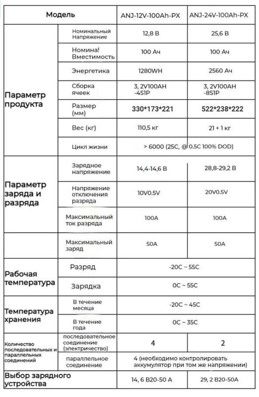 ANENJI LiFePO4, емкость 100Ah, 12 В