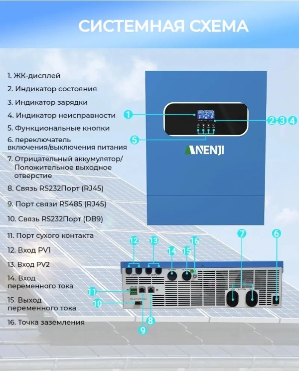 ⚡ Гибридный солнечный инвертор ANENJI 11KW 48V